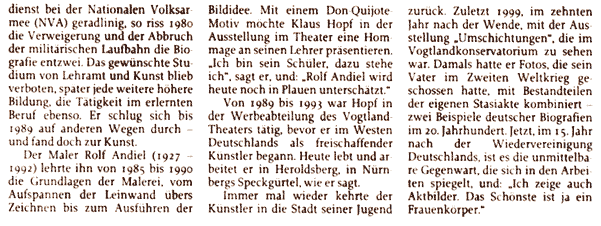Freie Presse 03.04.2005 - Bilder provozieren mit Schönem