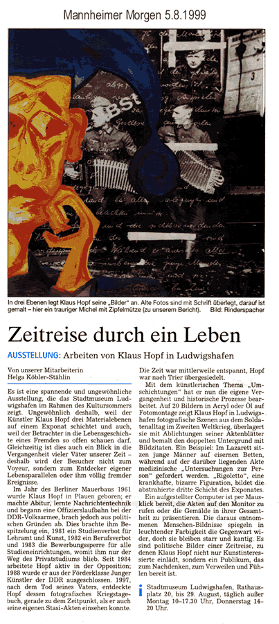 Mannheimer Morgen 05.08.1999 - Zeitreise durch ein Leben