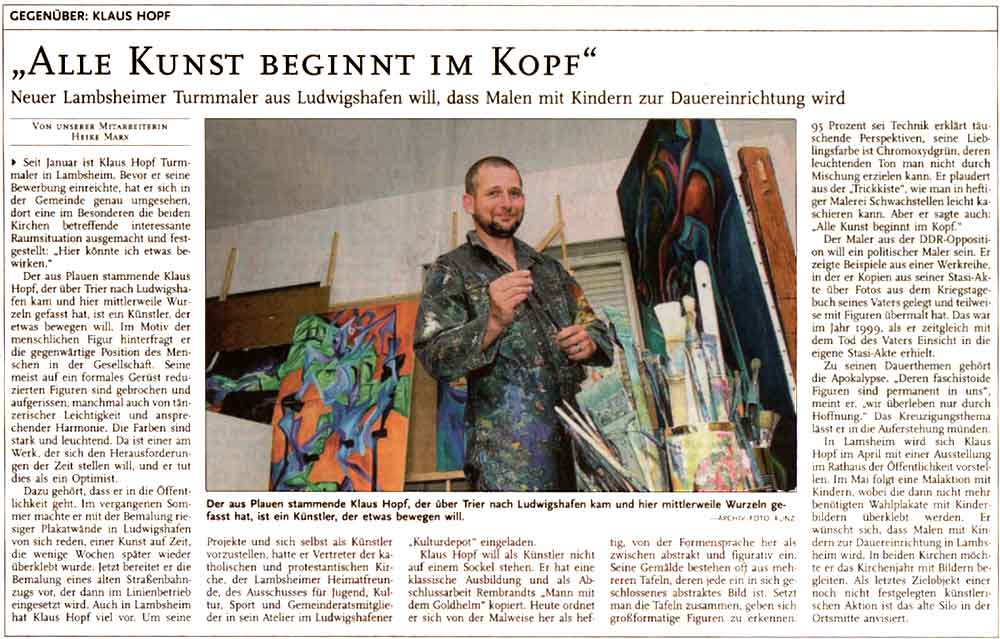 Rheinpfalz 23.02.2001 - Alle Kunst beginnt im Kopf