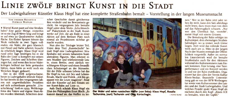 Rheinpfalz 23.03.2001 - Linie Zwölf bringt Kunst in die Stadt