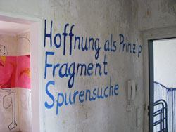 Welche Hoffnungen verbergen sich hinter den Fassaden dieser Wohnungen, verbergen die Tapeten, der Putz - so wie unsere Gesichter unerfüllte Träume, Wünsche, Hoffnungen oder Botschaften.
