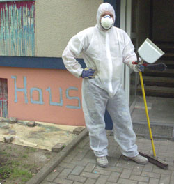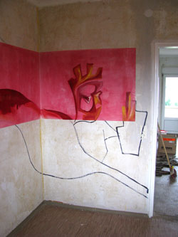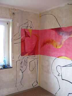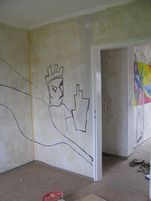 Die Wohnräume werden zu Kunsträumen, Aktionsräumen die Vorgeschichte aufheben, transzendieren, überwinden und verschwinden lassen oder sich ihr neu annähern. Alte Zwecke und Funktionen werden in neue überführt. Raum geben und Raum nehmen, das ist die Symbiose zwischen Abrissobjekt und Künstler.