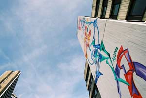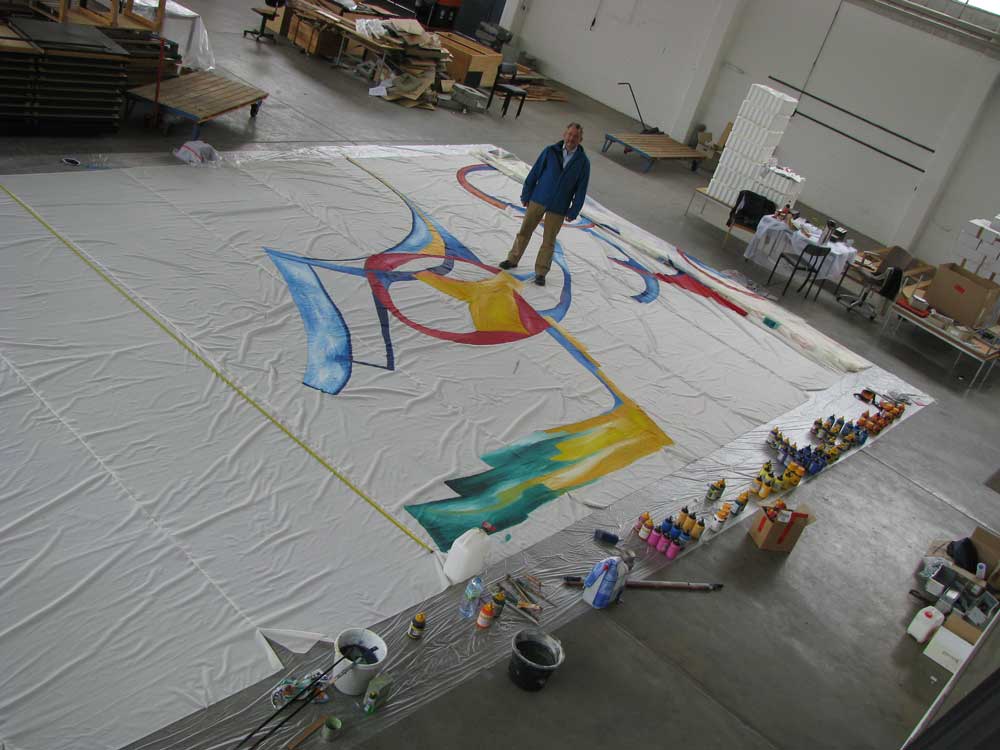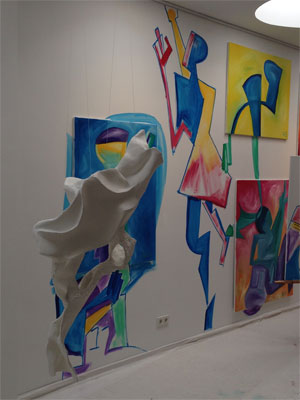Das Gemälde, 4 m x 19 m (ohne Innenflächen), hat viel Kraft gekostet (auch physisch). Beim Skizzieren und Malen musste immer wieder die Wirkung ... (Beschreibung des Projektes)