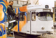 Ich komprimiere meine Bilderwelt auf einer Straßenbahn. Kunst erobert ungewohntes Terrain, verdrängt gewohnte Erfahrungen und setzt an diese Stelle neue Bilder. Durch Konzerte in der Straßenbahn werden neue Klangerfahrungen möglich. KunstSchicht kommt - wie auch die vorherigen beiden Projekte ”zu den Menschen”. Die Aktion macht aus der Stadt eine riesige Galerie, einen riesigen Konzertsaal. Kunst wird Bestandteil des gewohnten alltäglichen Lebens... (Beschreibung und Bilder des Projektes)